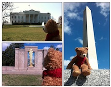 I went to Washington back in March too. We went to the White House and the 1st World War memorial (I think) and the Washington Monument. We had a lot of fun, but it was quite a cold windy day and I kept getting blown away. I've been quite a few places over the summer, but my person kept forgetting to take me out of the bag, so to be honest, I've no idea where else I've been. It could have been some really nice places, but we'll never know! Now, if I look grumpy enough, maybe I'll get to go places again!