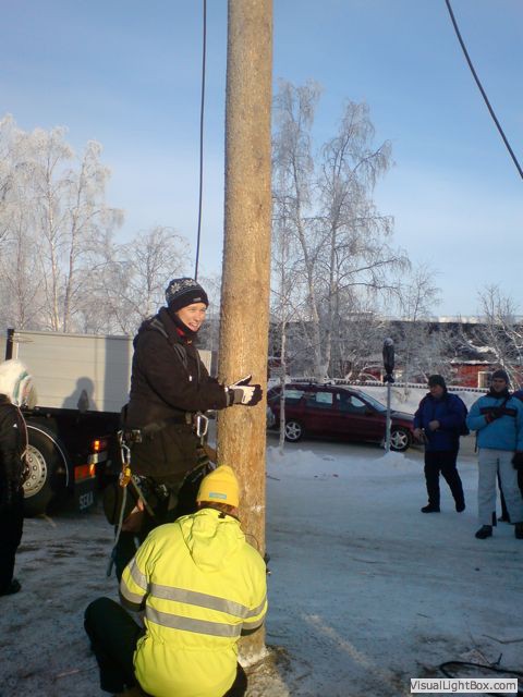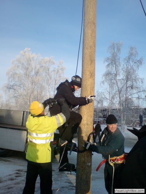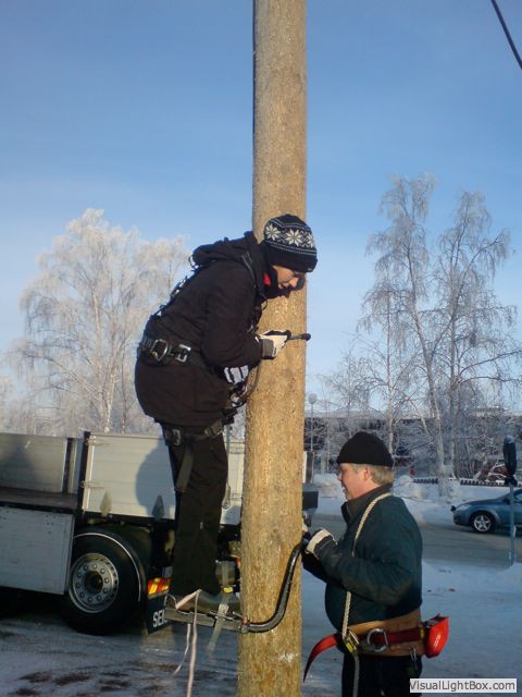 Climbing telephone pole