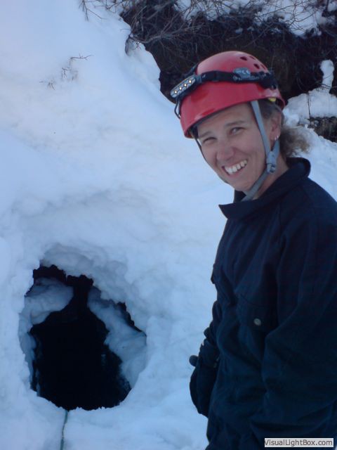 on the snow mobile