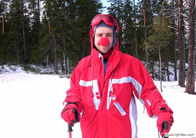A skiing stooge!