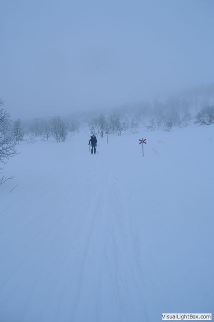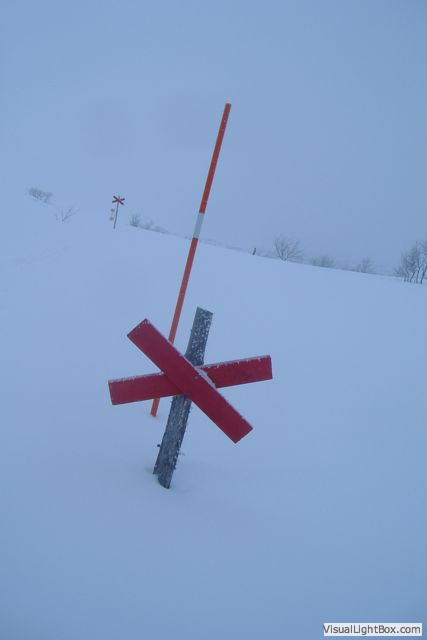 A 2 metre high marker in deep snow